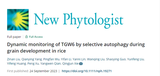 农学院、亚热带农业生物资源保护与利用国家重点实验室、农业农村部华南作物资源高效利用重点实验室、广东省植物分子育种重点实验室谢庆军课题组在中科院一区Top期刊New Phytologist(IF5-year =10.5)在线发表了题为“Dynamic monitoring of TGW6 by selective autophagy during grain development in rice”的研究论文(论文链接:https://nph.onlinelibrary.wiley.com/doi/10.1111/nph.19271)。文章报道了选择性细胞自噬通过降解THOUSAND-GRAIN WEIGHT 6 (TGW6)蛋白调节水稻籽粒发育的分子机理,为水稻产量和品质的协同改良提供了新见解。