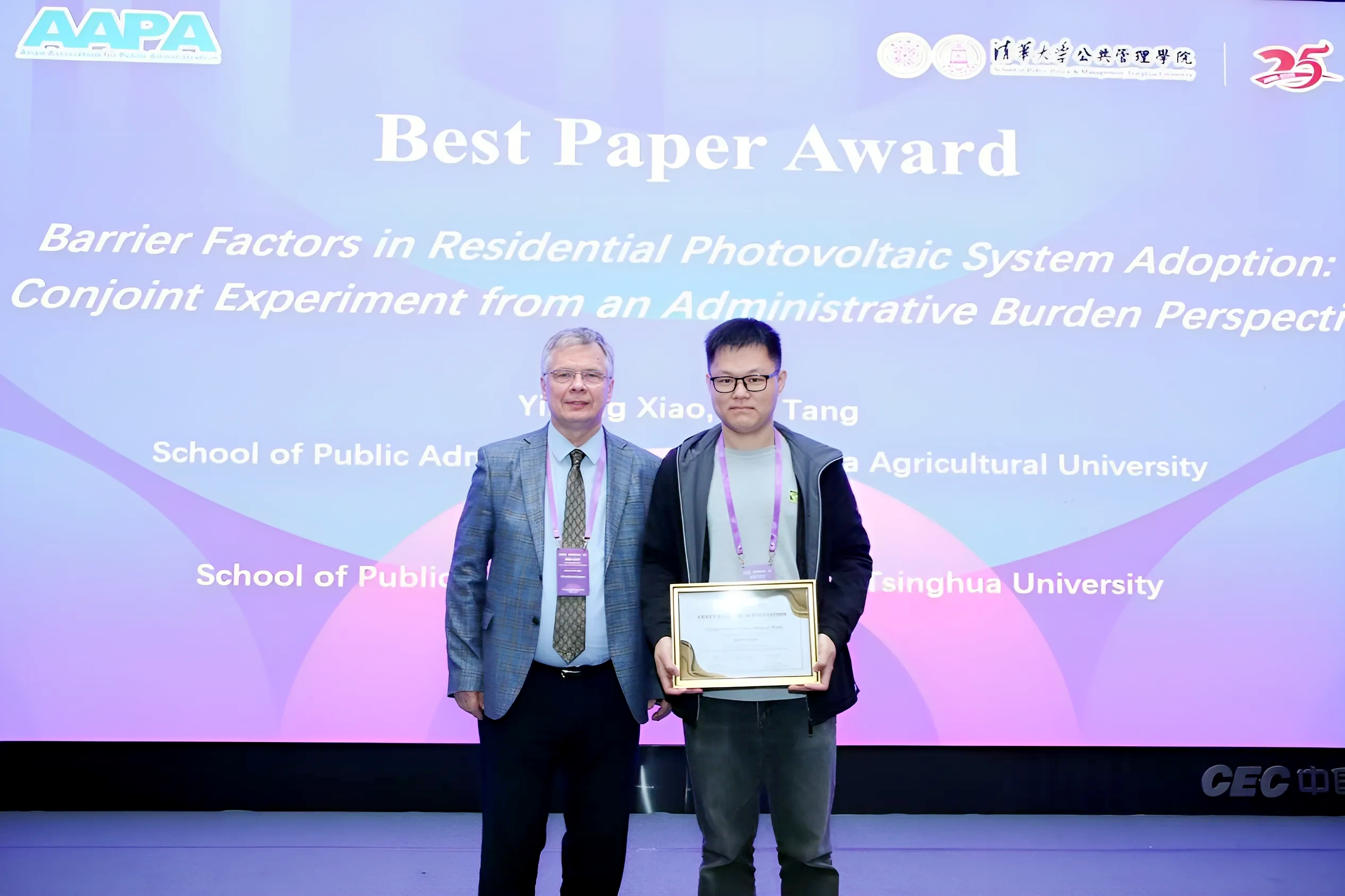 10月17-19日,2025年亚洲公共管理学会(AAPA)年会在北京召开,会议评选出两项最佳论文奖(Best Paper)。华农公共管理学院肖一鸣副教授、唐斌教授等学者合作完成的学术论文获最佳论文奖。