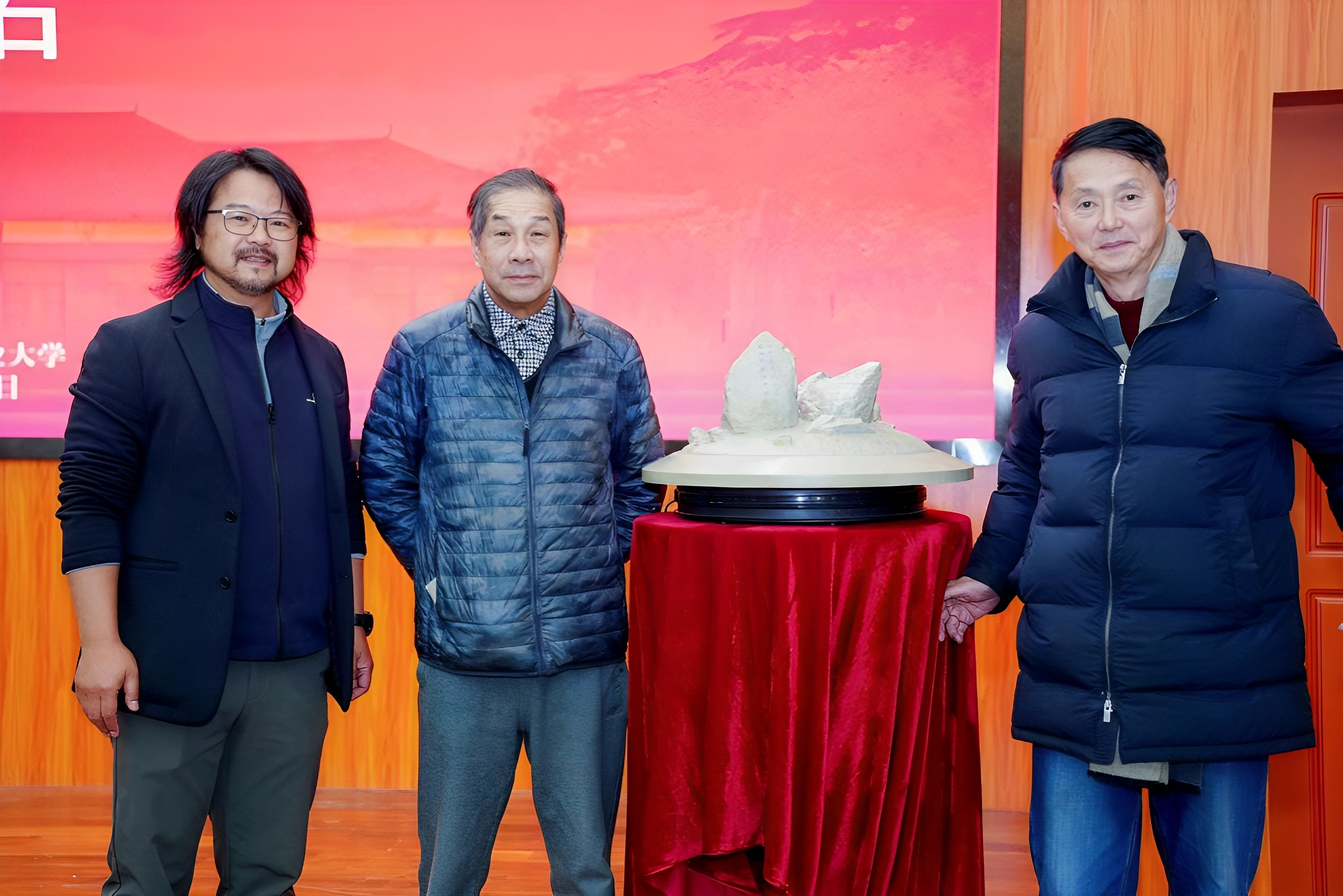 在华南农业大学风景园林学科四十周年纪念仪式上,龙门山“毕路蓝缕,以启山林”风景石群复原微缩雕塑揭幕纪念仪式举行,与会嘉宾为复原微缩雕塑揭幕。与会嘉宾作主旨报告,围绕华南农业大学风景园林学科史梳理和原国立中山大学龙门山((现为华南农业大学图书馆基址)风景石群复原研究展开探讨。