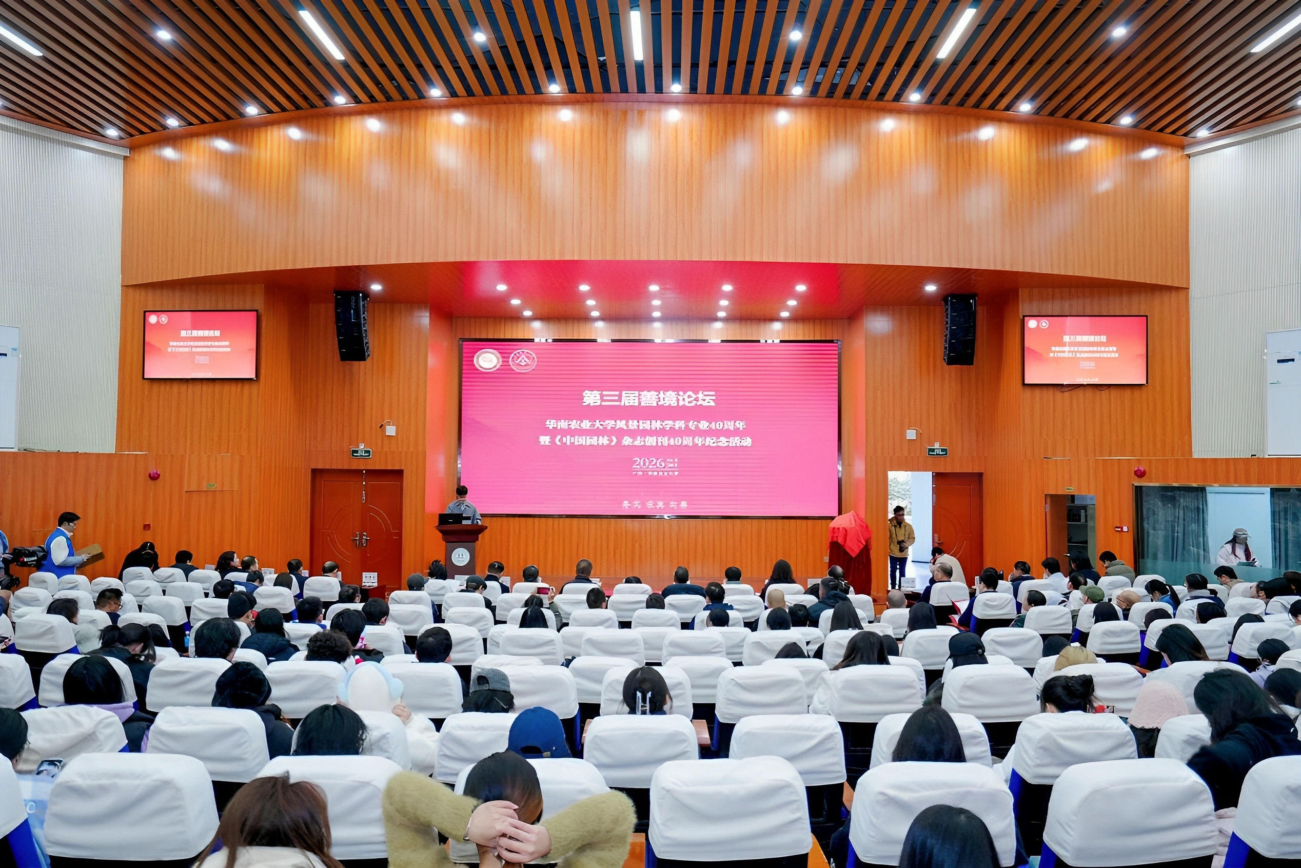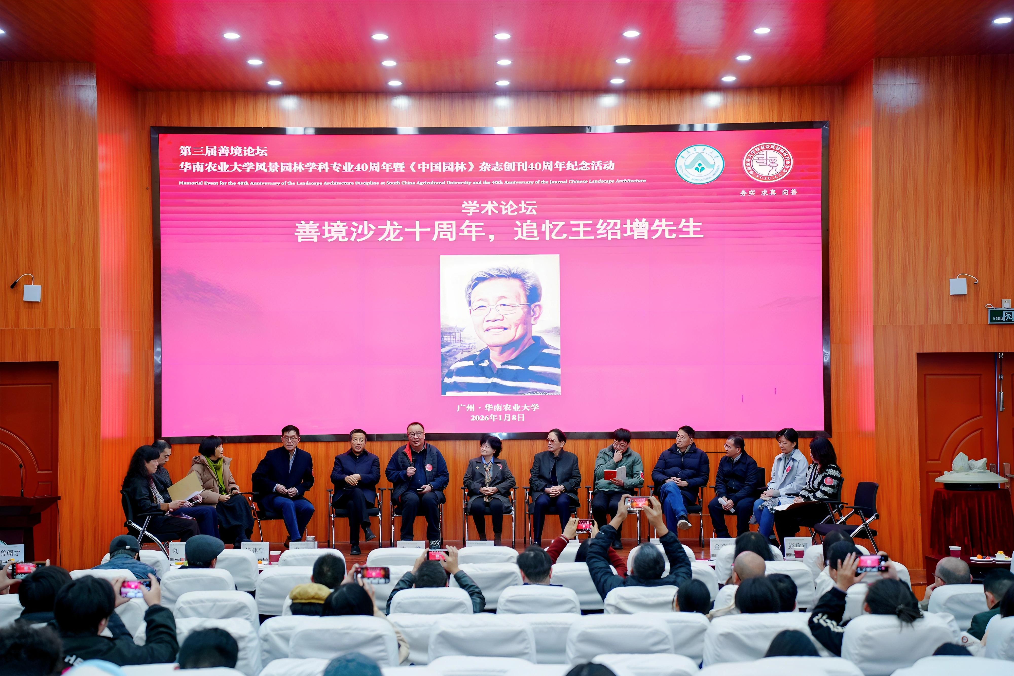 1月8日,“第三届善境论坛——华南农业大学风景园林学科专业40周年暨《中国园林》杂志社创刊40周年纪念活动”于华南农业大学林学与风景园林学院召开。论坛以“传承·探索·善境”为主题,通过纪念仪式、学术沙龙、花园导览、主旨报告等多个环节,梳理华南农业大学风景园林学科与《中国园林》杂志携手共进四十年的学术求索与行业发展之路,激发学科创新活力,为中国式现代化提供可持续的绿色方案。论坛汇聚了近百位来自国内各大高校、学会与企事业单位的风景园林学著名学者、资深专家以及华南农业大学校友会风景园林行业分会的优秀校友代表参会。