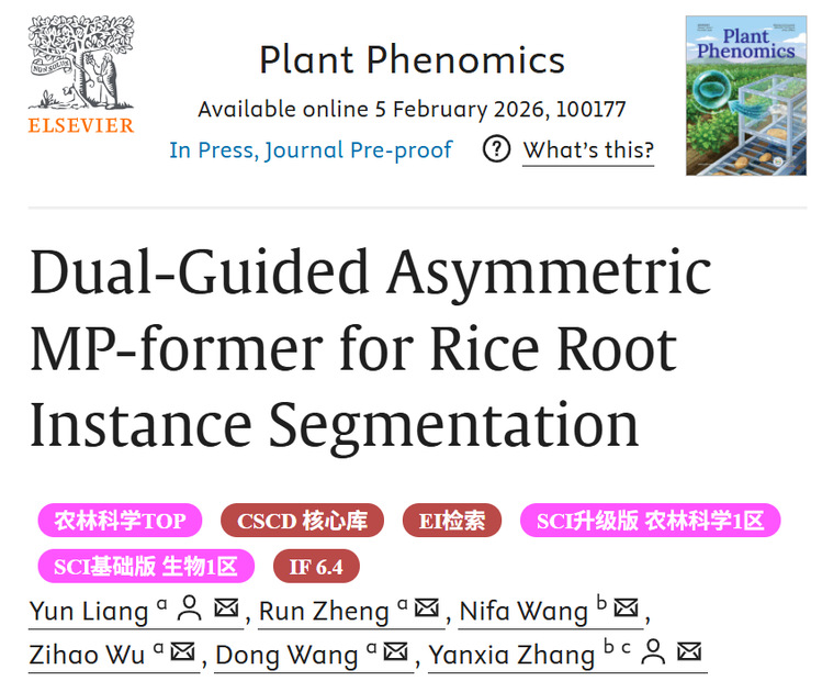 2月5日,农学院张艳霞教授团队与数学与信息学院梁云教授团队在植物表型组学领域取得重要突破。团队合作提出一种新型实例分割模型——双引导非对称MP-Former(DGA-MP-Former),构建了首个水稻根系实例分割基准数据集(RRSD),为高通量、高精度根系表型分析提供了全新技术方案。