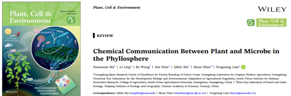 叶际是植物与微生物互作的重要界面,但长期被视为被动生境而研究相对薄弱。课题组首次系统性地提出了叶际化学生态位驱动的植物-微生物组双向谈判网络的观点。该研究解析了植物如何通过叶片物理特征、免疫基因及发育阶段等核心因子主动构建化学过滤网,在动态环境中精准筛选并招募特定的微生物成员;同时,文章重点阐述了初级代谢物、次级代谢物、植物激素及挥发性有机物(VOCs)在叶际通讯中的双重功能调控角色,并系统论述了微生物源分子如何通过调节宿主激素稳态及免疫系统,实现对植物生长与抗逆性的反向反馈调节。相关成果以封面论文发表于Plant, Cell & Environment(中国科学院一区Top期刊,影响因子6.3)。农学院2023级硕士研究生马宣宣、2024级硕士凌俐为共同第一作者,连腾祥副教授、马启彬教授、中国科学院新疆生态与地理研究所赵帅副研究员为共同通讯作者。