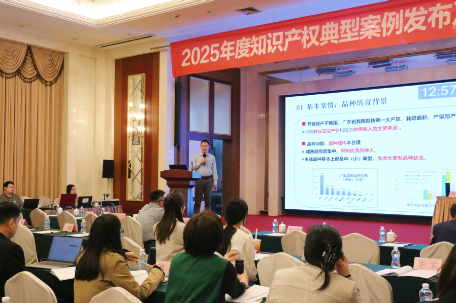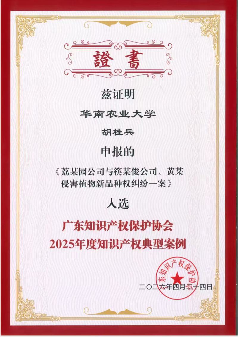 近日,广东知识产权保护协会公布“2025年度知识产权典型案例”评选结果。我校申报的“荔某园公司与筷某俊公司、黄某侵害植物新品种权纠纷案”从全省190件申报案例中脱颖而出,成功入选18件典型案例,且是本次评选中唯一入选的植物新品种权纠纷案例。4月24日,我校受邀出席案例发布会并作专题报告。