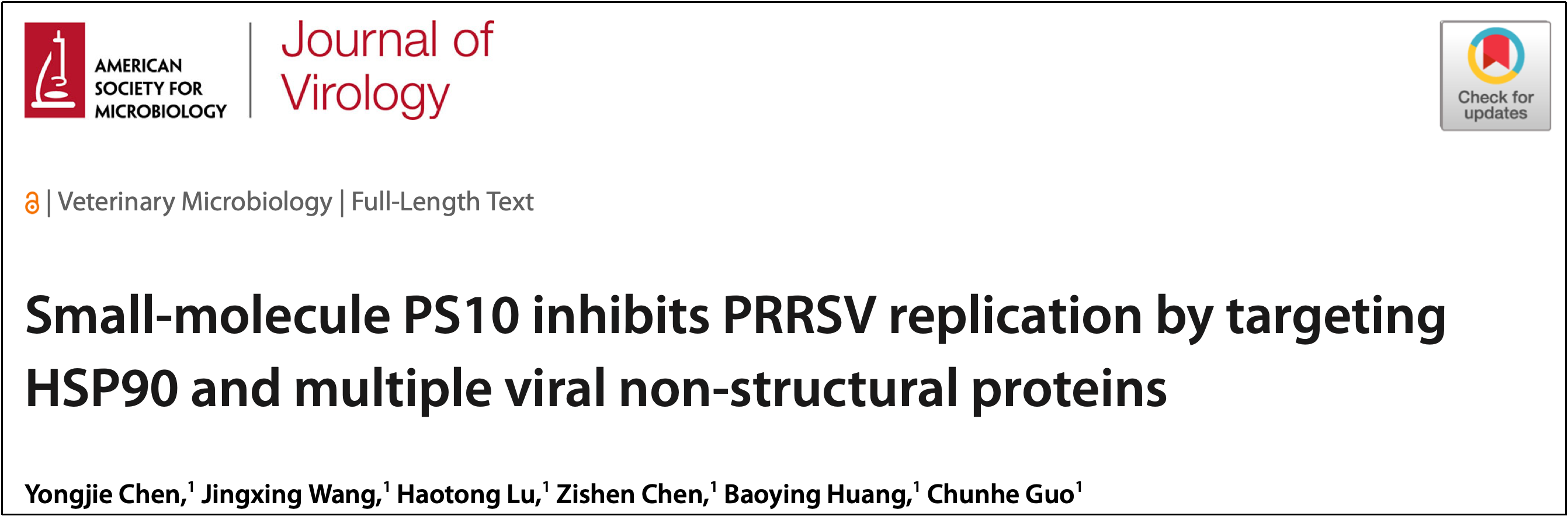 发表在Autophagy的LAPTM4A相关研究,兽医学院何展博士为第一作者,郭春和教授与浙江大学赵鹏伟博士为共同通讯作者;发表于Journal of Virology的PS10相关研究,兽医学院陈永杰博士、王婧杏和卢浩彤硕士为共同第一作者,郭春和教授为唯一通讯作者。上述研究得到国家重点研发计划(2023YFD1801500)等项目的资助。